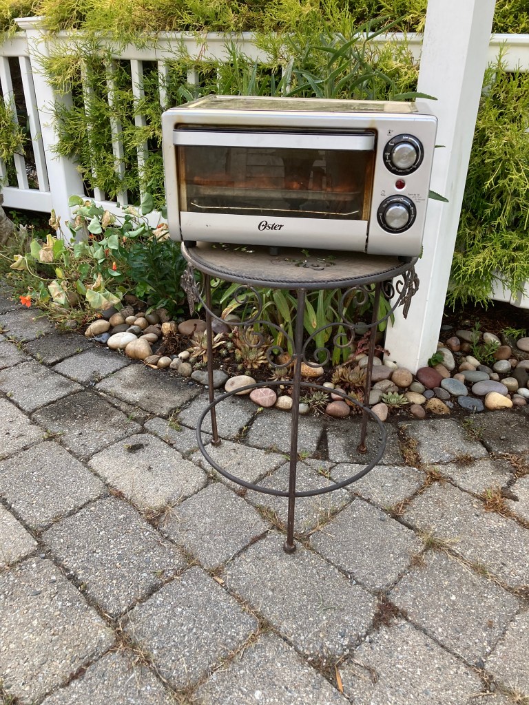 Tonight we made dinner on the grill and because I had some frozen fries from the market we took a toaster oven outside and plugged it in to cook them without heating the kitchen.