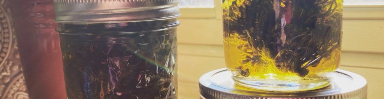 Processing, it turns out, is very simple. You “decarboxylate” the flowers in an oven at a low temp for 35 -60 minutes at about 280 degrees Fahrenheit. After that I put them into a jar, covered them with olive oil, and left them sit for 6-8 weeks. I see lots of websites suggest using a precision cooker or crock pot. I didn’t.