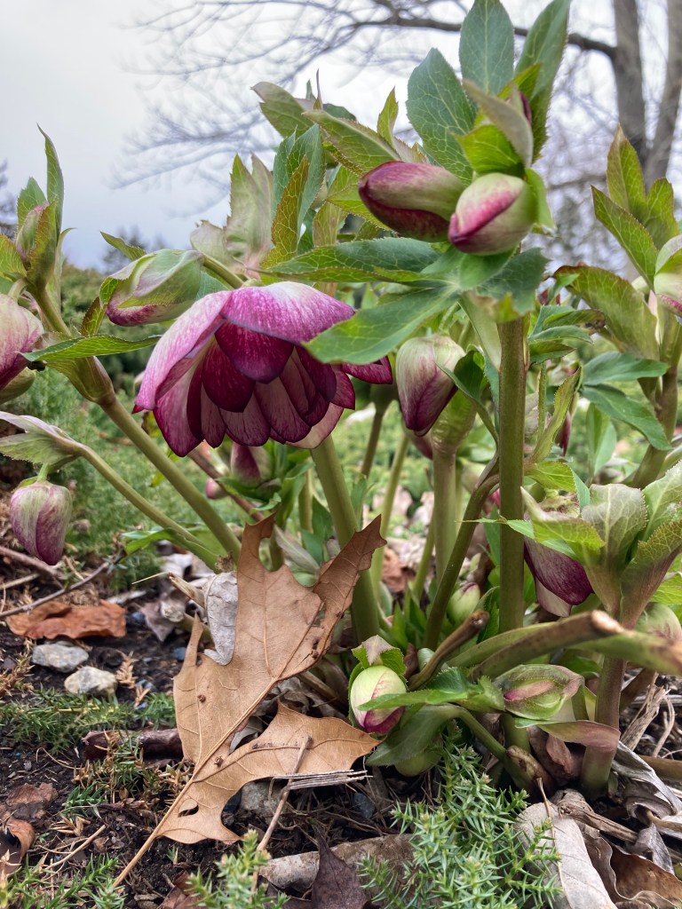 The hellebore are blooming. They are absolutely gorgeous. The photo here is from the last week in March:
