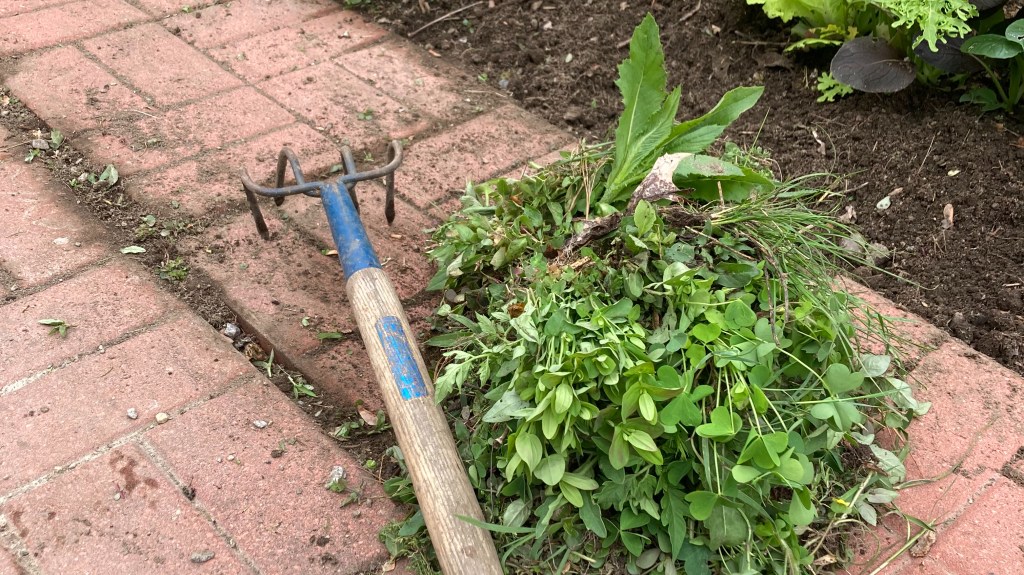 I managed to jam some garlic in before it got too cold – but I forgot to add it to my plan, so I’ll rework it to include the garlic, my rhubarb plant, and some herbs I put in the day we arrived. (Yes, I’m that attached to my plants.)